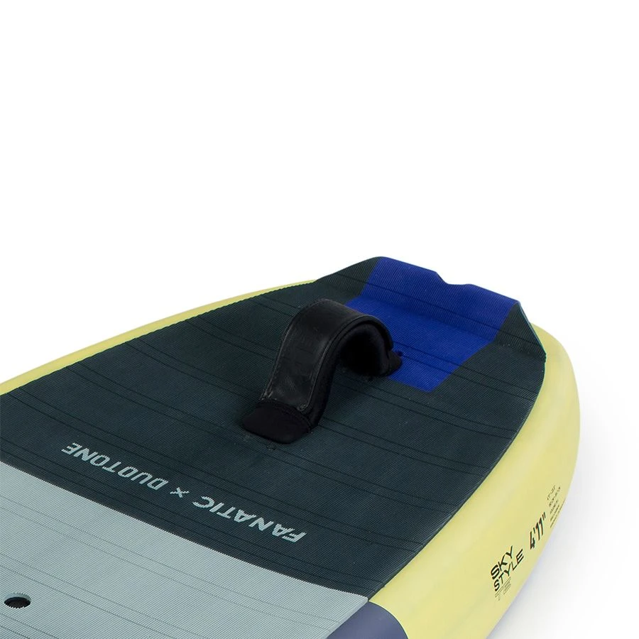 The Sky Style, available in four sizes from 55l to 85l, has been designed to maximize stability when starting and landing tricks, as well as improving turns, reactivity and take-offs for jumps. The higher rocker line of the Sky Style greatly improves turning response through increased leverage over the pitch of your foil, resulting in faster and more direct reactivity. The more ?nose-up? riding style is ideal for starts and landings and improves the flying and turning behaviour of your foil when drawing lines in the surf. The deep deck recess with a high-volume nose section offers incredible stability for landings and creates a stable and balanced platform for sinking starts for riders using the Sky Style in a volume that doesn?t fully float their body weight. The higher nose recovers remarkably well from steep landings and makes it much easier to load up for jumps by providing more distance between the nose and the water to prevent catching.